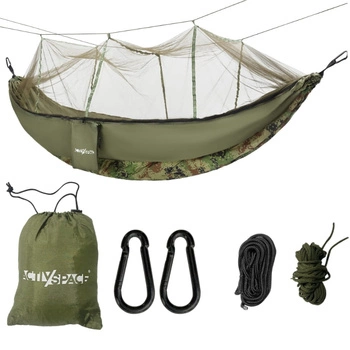 Hamak turystyczny z moskitierą przenośny biwak - zestaw military
