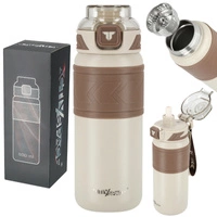 Kubek termiczny ze słomką uchwytem na kawę herbatę szczelny 800ml - beige