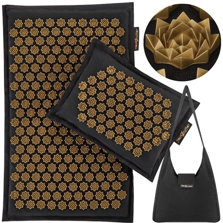 Tajemnica właściwości maty i poduszki do akupresury tkwi w 6950 ostrych kolcach, z których składa się 278 rozet ułożonych w nowoczesny kształt lilii wodnej. Pod wpływem ciężaru kolce uciskają poszczególne partie ciała, wspierając prawidłowe krążenie, spokojny sen i dobre samopoczucie.