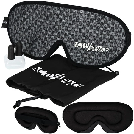 - Specyfikacja:Kolor: czarno-szaryMateriał: pianka 3D, gąbka poliestrowa, bawełnaSzerokość: 23,5 cmWysokość: 10 cmZaciemnienie: 100%Rozmiar: uniwersalny (elastyczny regulowany pasek)Producent: ACTIV/SPACE+2x Gratis:Zatyczki do uszu 2 sztPoręczny worek do pr