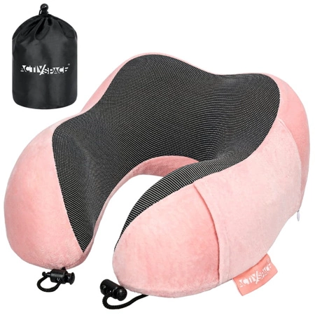 Poduszka podróżna turystyczna rogal na szyję - różowy