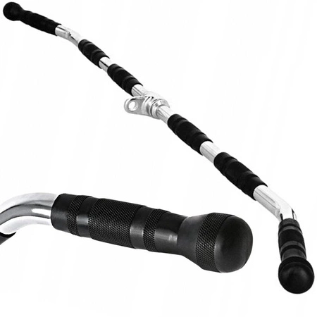 Przymocuj drążek do wyciągu górnego lub dolnego i rozpocznij ćwiczenia. Dzięki aż 6 gumowanym rękojeściom możesz kontrolować rozstaw dłoni, a więc i trenowane partie mięśniowe.