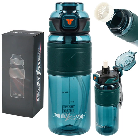 Butelka na wodę tritan 600ml bidon sportowy z miarką – green