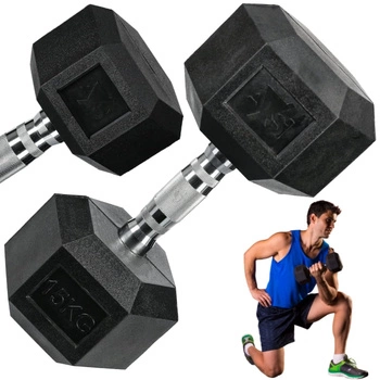 Hantle stalowe HEX pokryte gumą - 15 kg (1 sztuka)