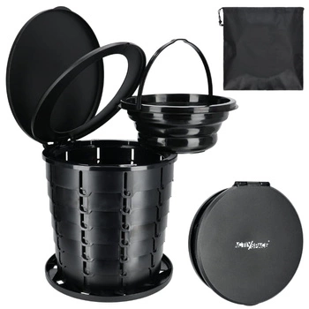 Przedstawiony produkt może Ci posłużyć nie tylko jako toaleta, ale również jako śmietnik. W tym celu należy rozłożyć konstrukcję, a do środka włożyć worek na śmieci zamiast silikonowego wkładu. Gabaryty powinny w zupełności wystarczyć, by pomóc Ci w utrzymaniu porządku podczas pobytu na łonie natury.